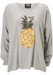 Kissé szétnyúlt hatású felsők, a szokásos flitter díszítéssel. Van itt masni, ananász, papagáj...